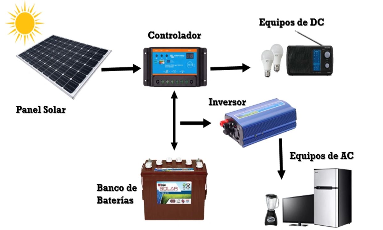 Los sistemas fotovoltaicos aislados se utilizan en lugares sin acceso a la electricidad. Se diseñan para cubrir desde pequeños sistemas de iluminación y carga de celulares, hasta una vivienda o negocio con equipos de mayor consumo eléctrico. Durante el día los paneles solares convierten la radiación solar en electricidad de corriente directa que puede ser consumida directamente o almacenada en baterías para su consumo en las noches y días muy nublados. Para evitar la sobrecarga de la batería se utiliza un controlador o regulador de carga. Si se desean conectar equipos convencionales de 110V hay que incluir en el sistema un inversor o convertidor de energía.